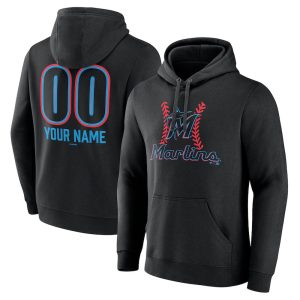 Men’s Miami Marlins Name & Number Custom Fastball Pullover Black Hoodie