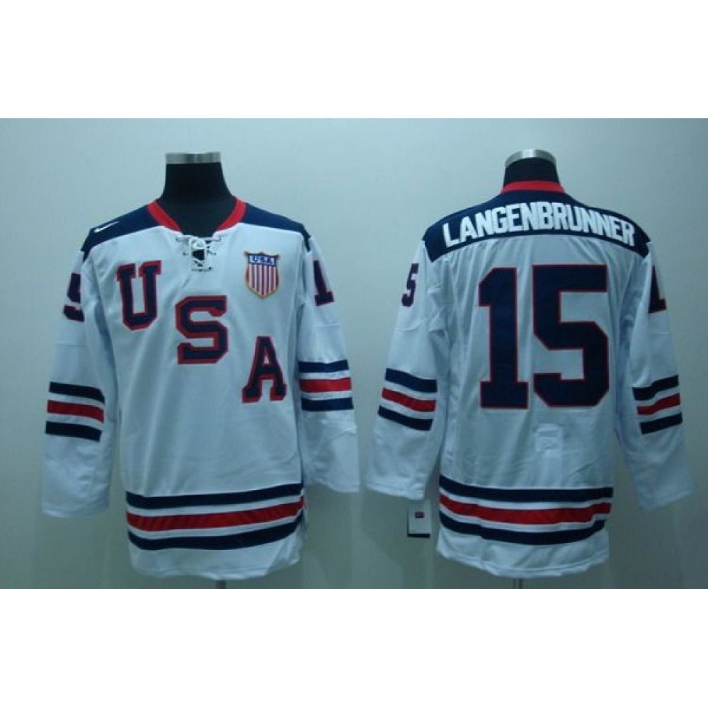 2010 Olympic Team USA #15 Jamie Langenbrunner Stitched White 1960 Throwback NHL Jersey