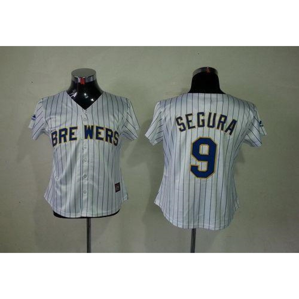 Brewers #9 Jean Segura White(Blue Strip) Women’s Fashion Stitched MLB Jersey