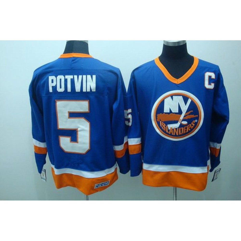 Islanders #5 Denis Potvin Stitched Baby Blue CCM Throwback NHL Jersey