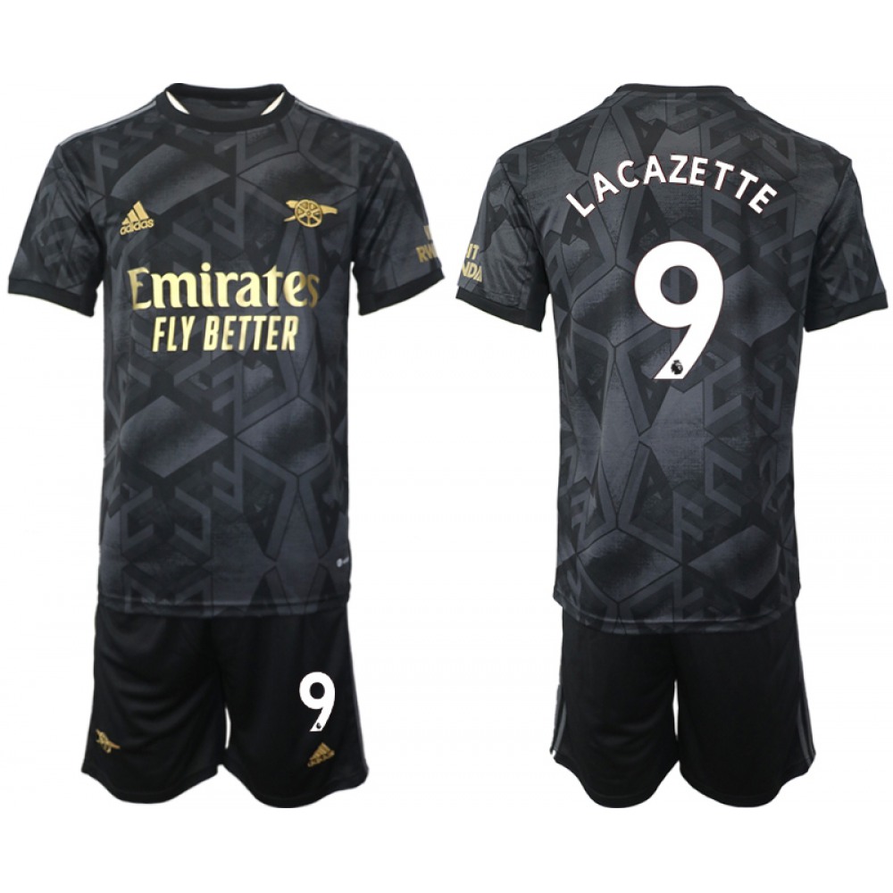 Men’s Arsenal F.C #9 Lacazette 2023 Black Away Soccer Jersey Suit