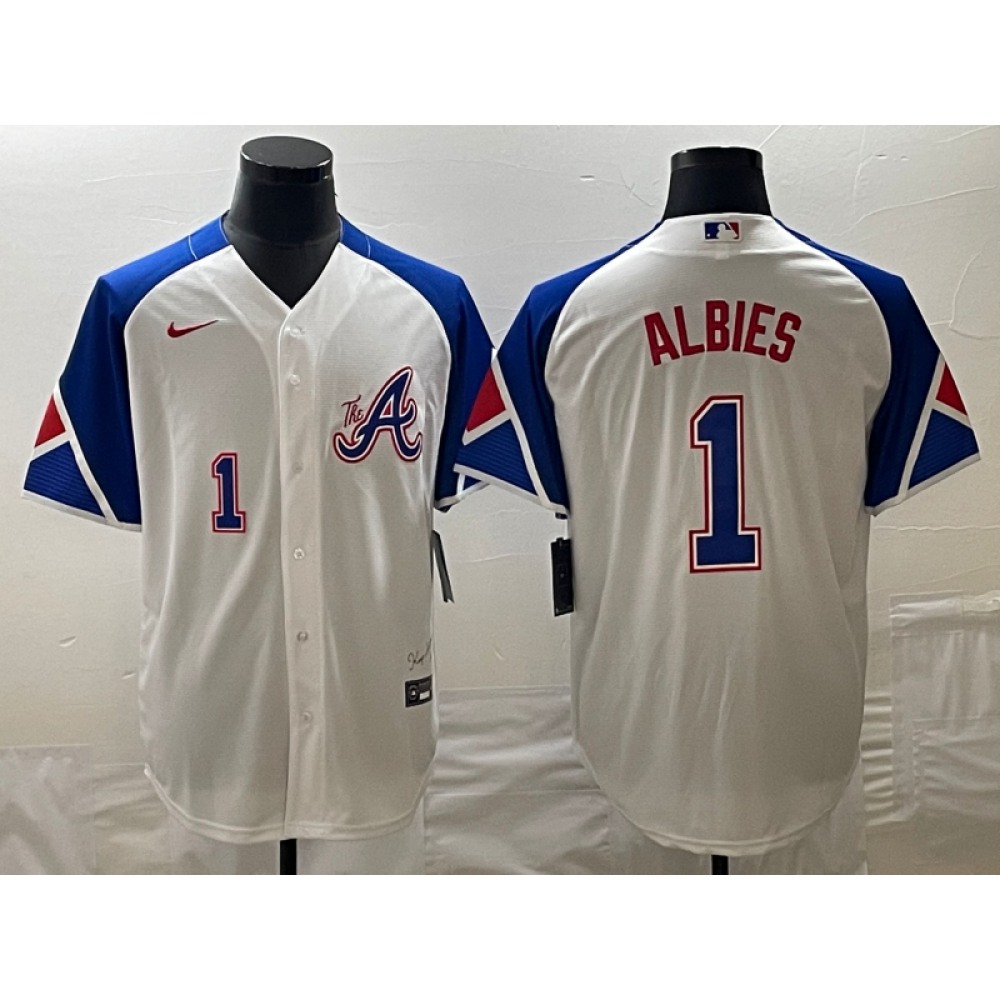 Men’s Atlanta Braves #1 Ozzie Albies Grey Cool Base Stitched Jersey