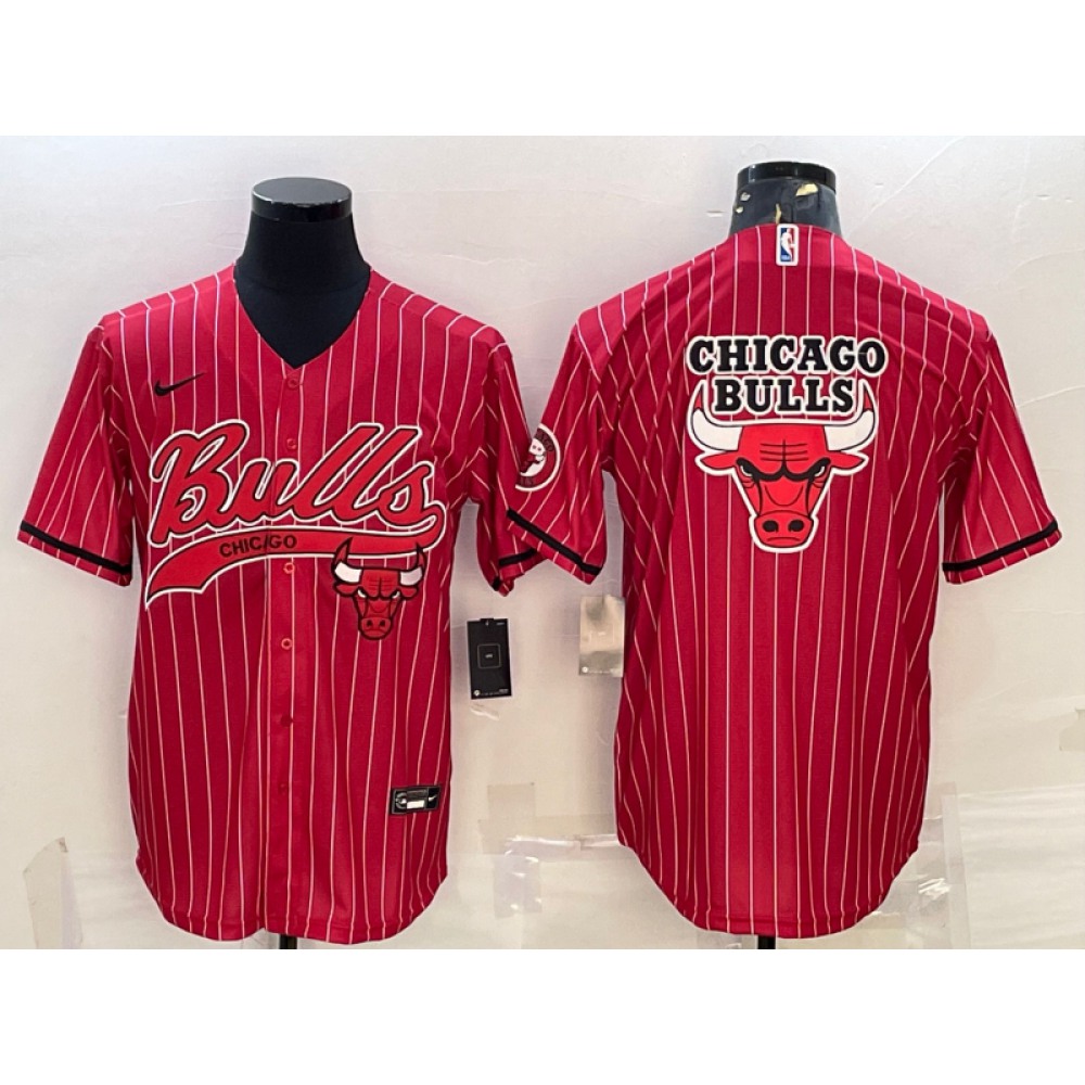 Men’s Chicago Bulls Red Team Big Logo Cool Base Stitched Baseball Jersey