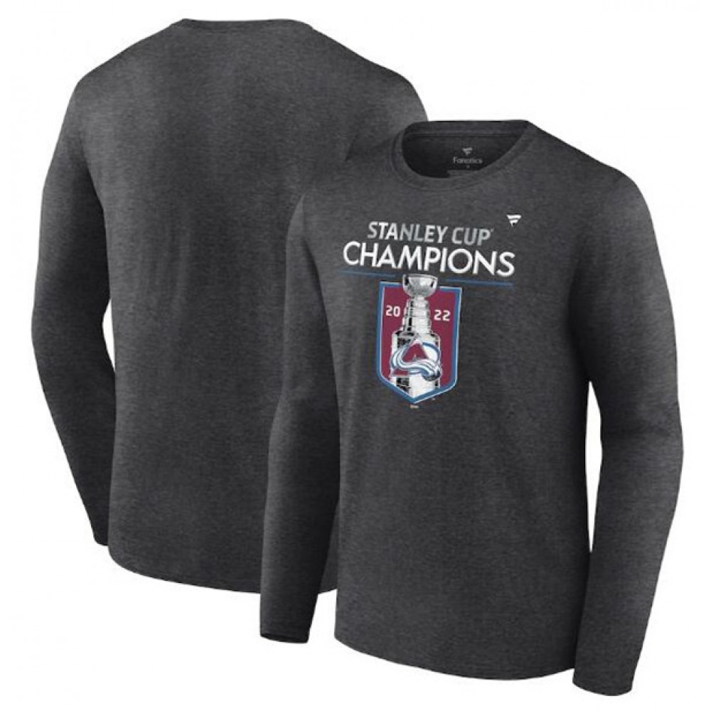 Men’s Colorado Avalanche Grey 2022 Stanley Cup Champions Back Check Multi-Hit Long Sleeve T-Shirt