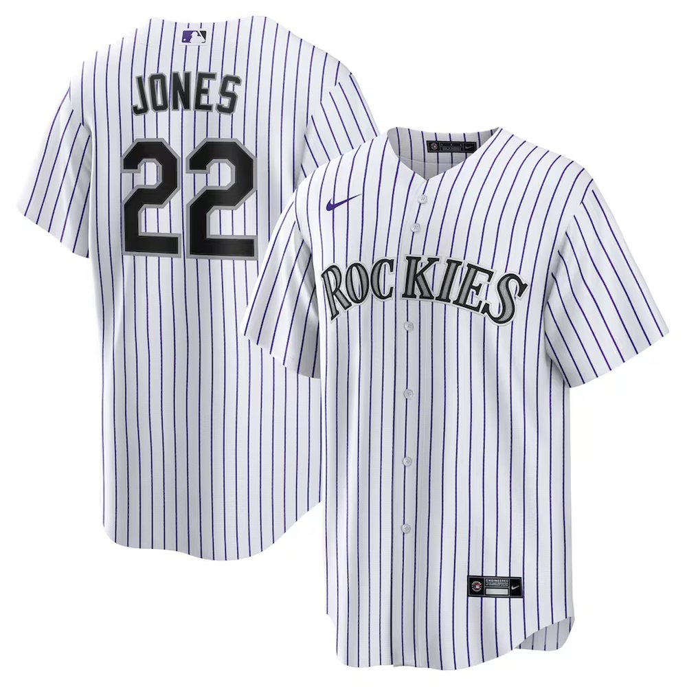 Men’s Colorado Rockies #22 Nolan Jones Nike White Home Replica Jersey