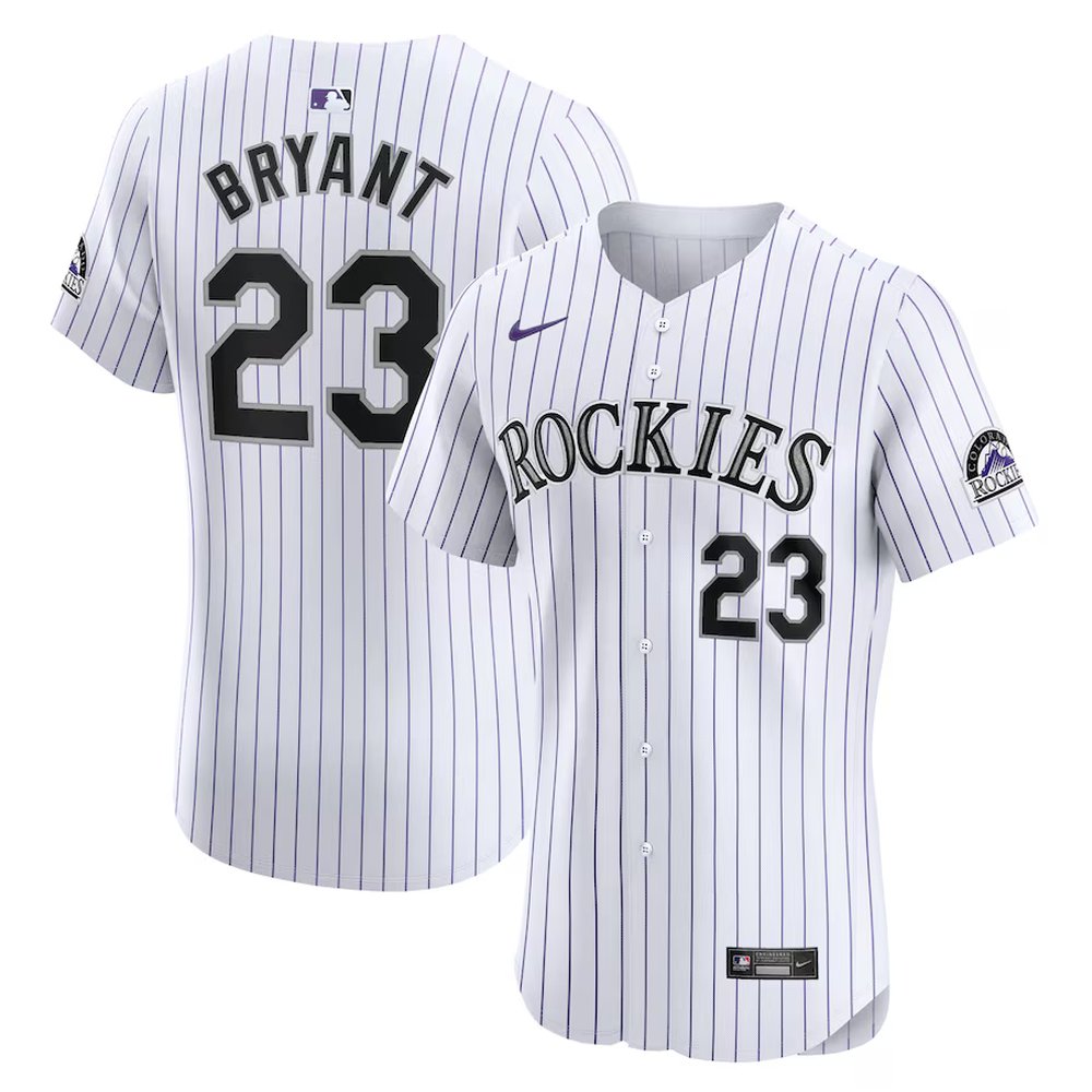 Men’s Colorado Rockies #23 Kris Bryant White Stitched Baseball Jersey