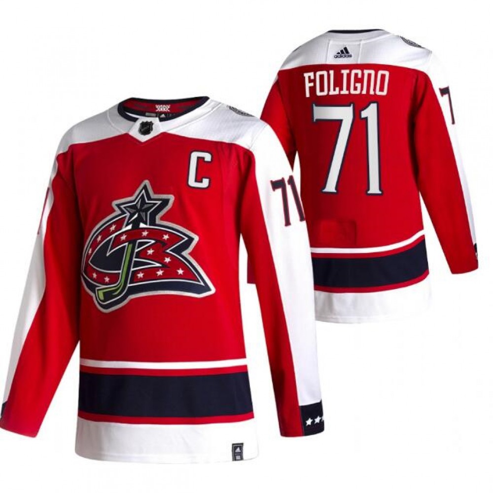 Men’s Columbus Blue Jackets #71 Nick Foligno 2020-21 Red Reverse Retro Stitched Jersey
