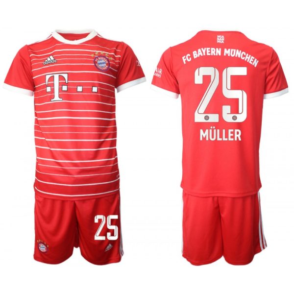 Men’s FC Bayern Munchen #25 Thomas Muller 22/23 Red Home Soccer Jersey Suit