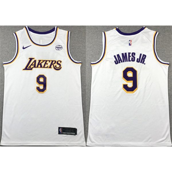 Men’s Los Angeles Lakers #9 Bronny James Jr. White 2024 Draft Icon Edition Stitched Basketball Jersey