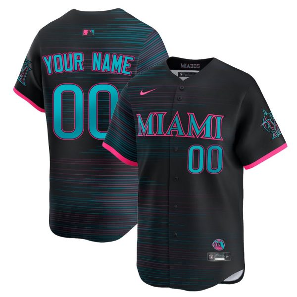 Men’s Miami Marlins Custom Nike Black 2025 City Connect Limited Jersey