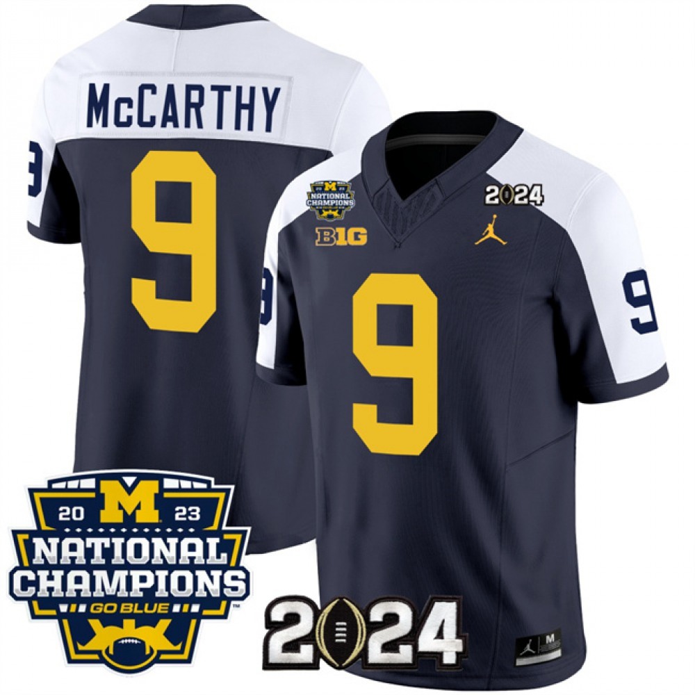 Men’s Michigan Wolverines #9 J.J. McCarthy Navy/White 2024 F.U.S.E. With 2023 National Champions Patch Stitched Jersey
