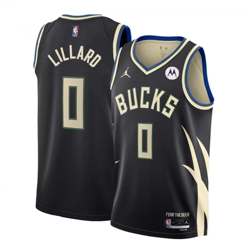 Men’s Milwaukee Bucks #0 Damian Lillard Black Statement Edition Stitched Basketball Jersey