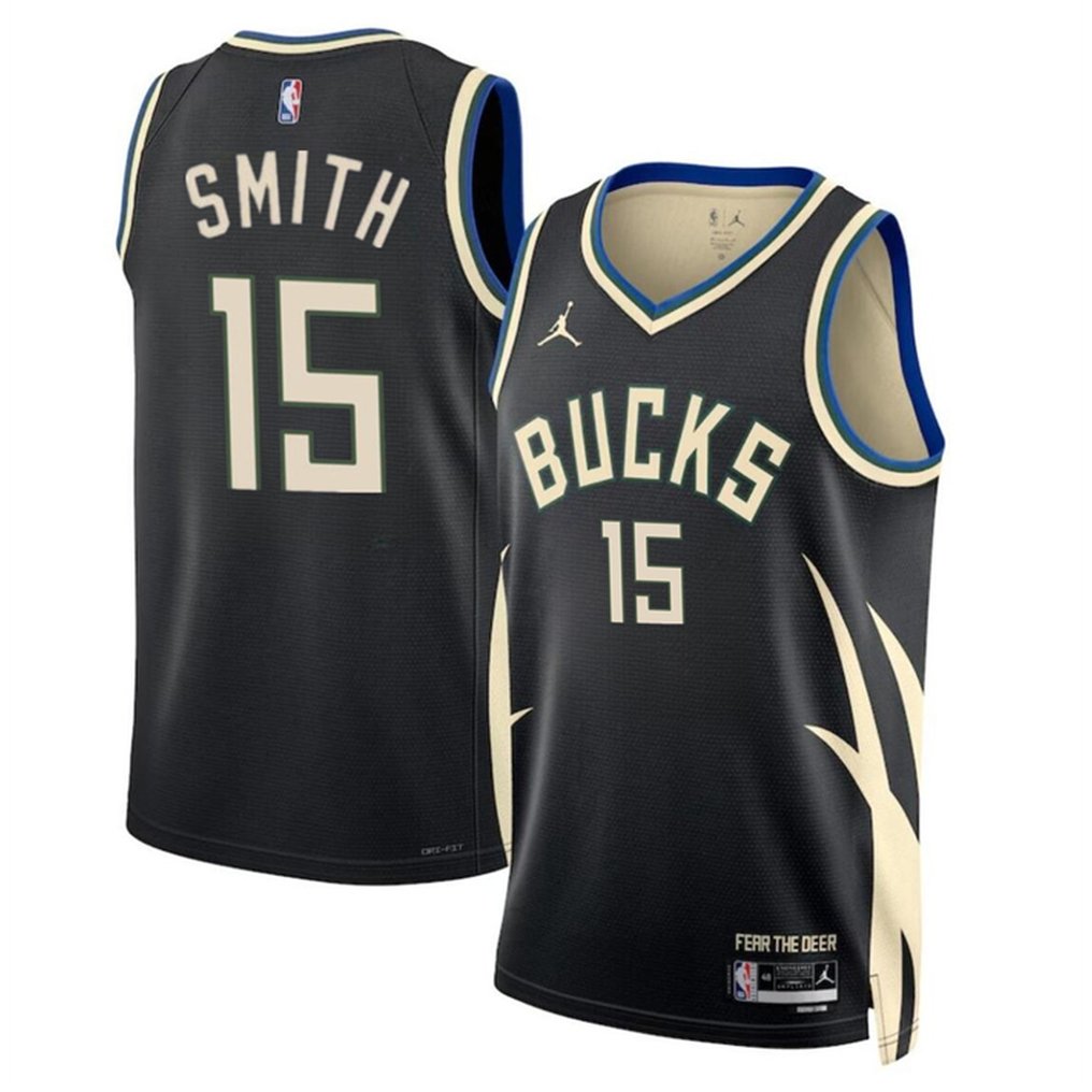Men’s Milwaukee Bucks #15 Tyler Smith Black 2024 Draft Statement Edition Stitched Basketball Jersey