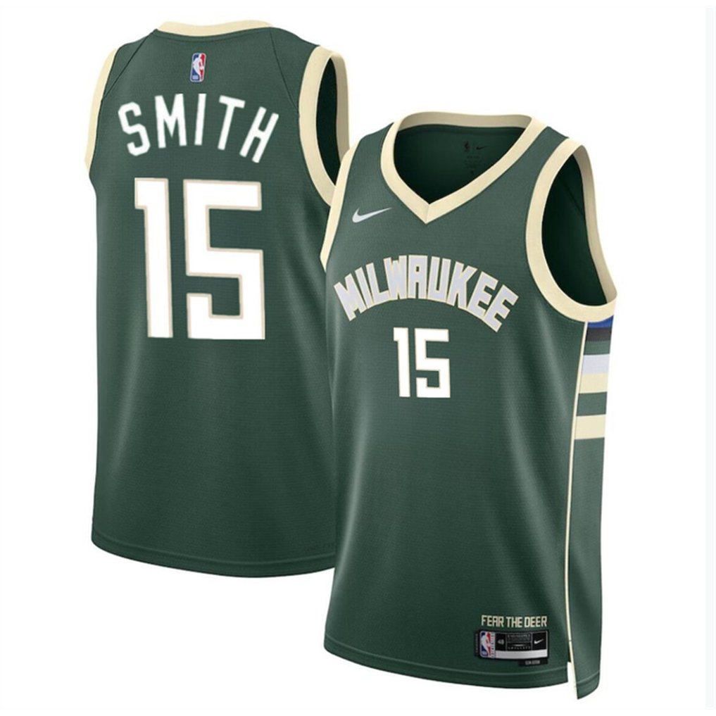 Men’s Milwaukee Bucks #15 Tyler Smith Green 2024 Draft Icon Edition Stitched Basketball Jersey
