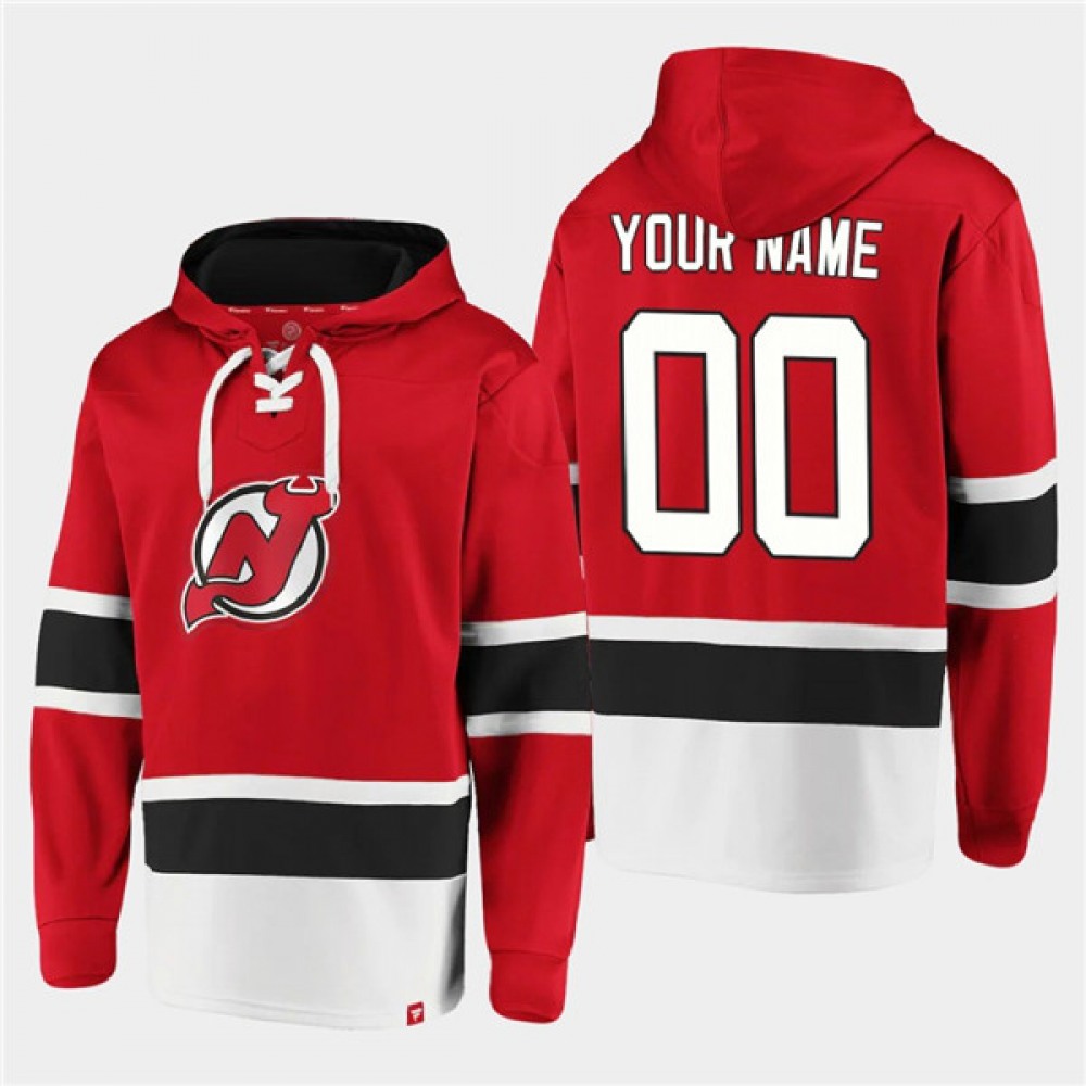 Men’s New Jersey Devils Active Player Custom Red Ageless Must-Have Lace-Up Pullover Hoodie
