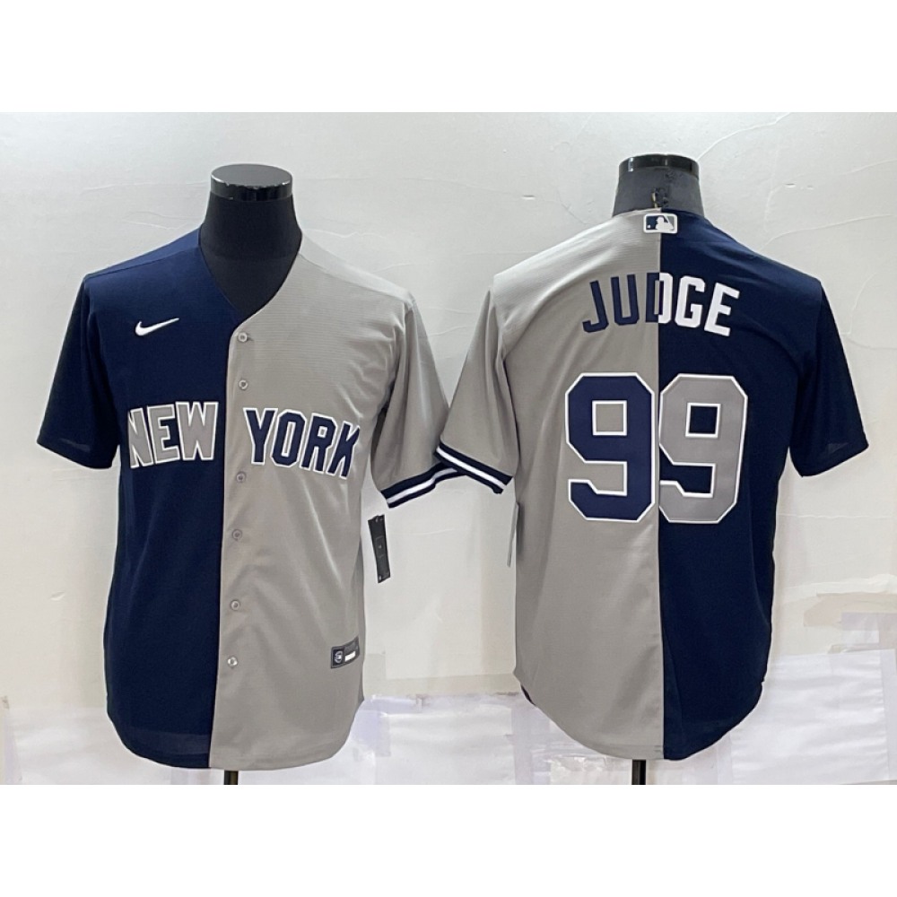 Men’s New York Yankees #99 Aaron Judge Navy/Grey Split Cool Base Stitched Baseball Jersey