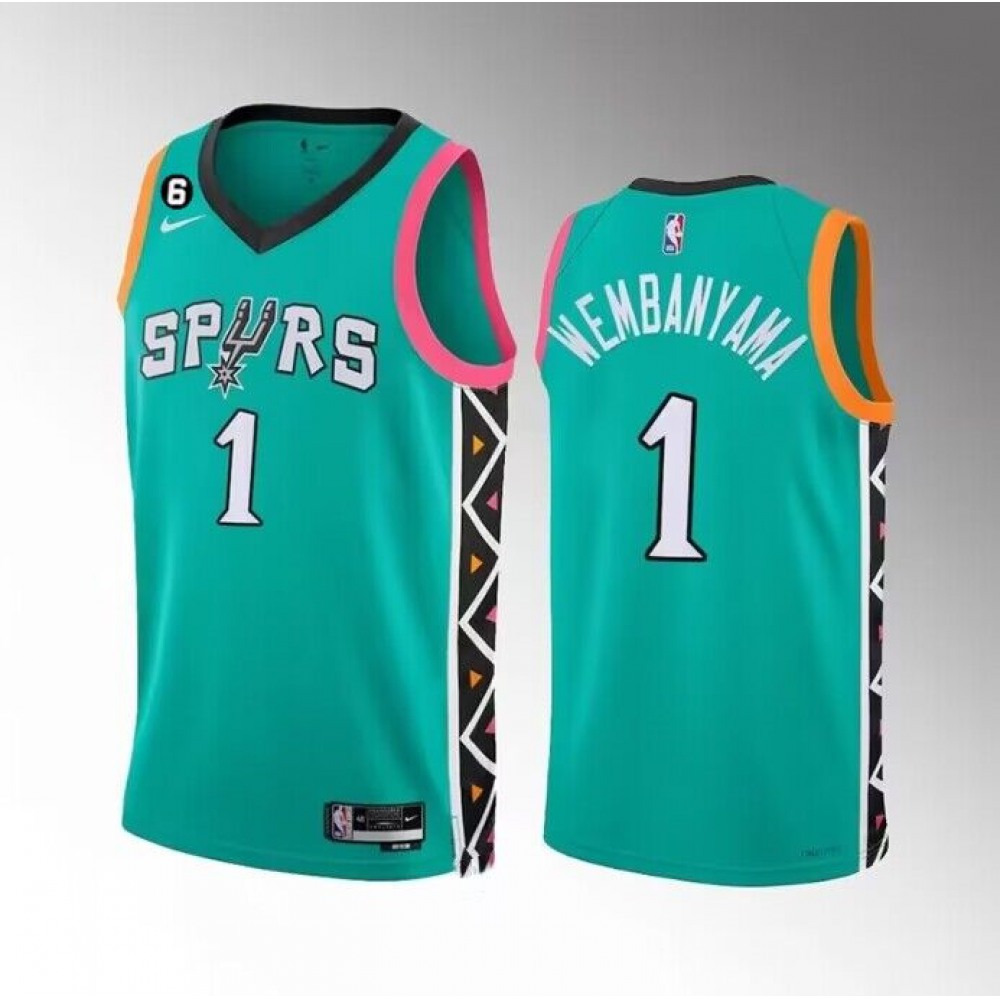 Men’s San Antonio Spurs #1 Victor Wembanyama Teal 2022/23 City Edition Swingman With NO.6 Patch Stitched Basketball Jersey