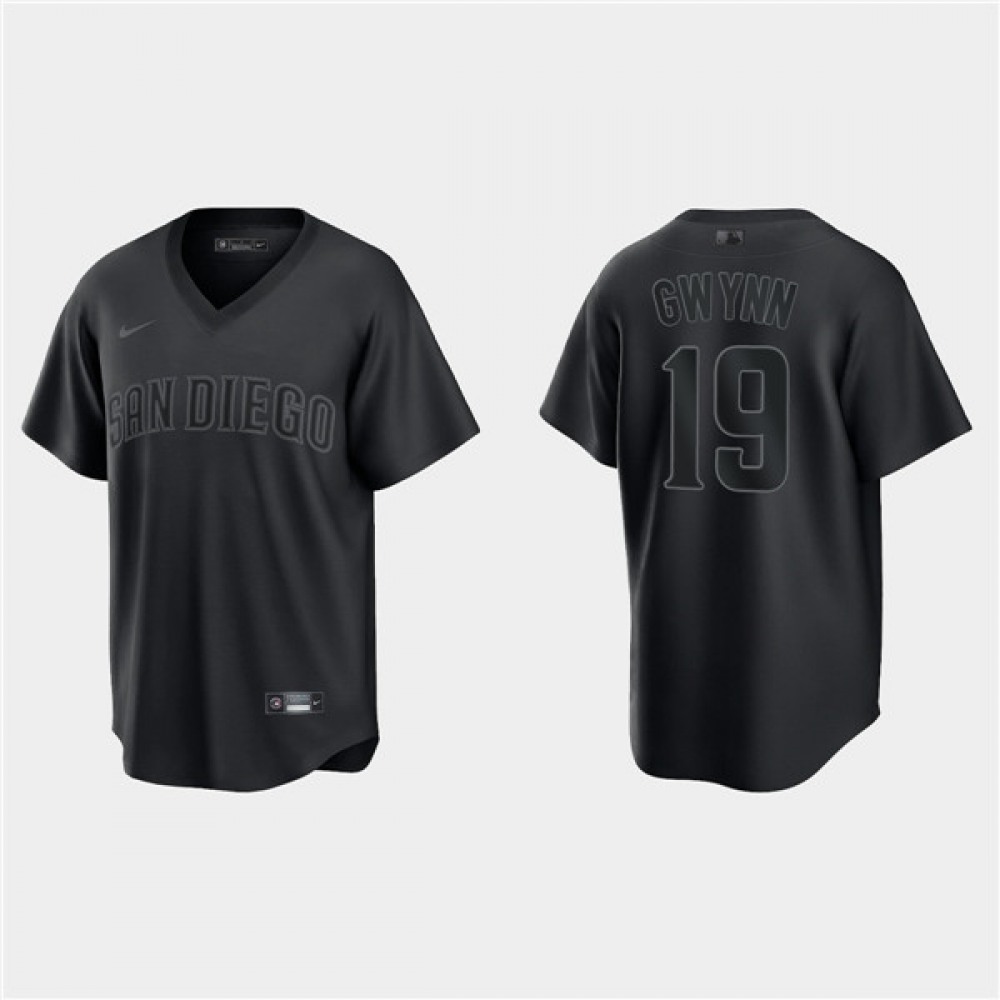 Men’s San Diego Padres #19 Tony Gwynn Black Pitch Black Fashion Replica Stitched Jersey