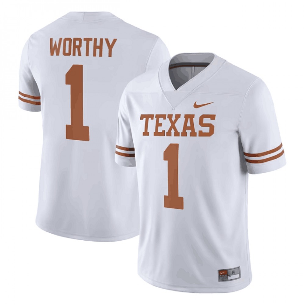 Men’s Texas Longhorns #1 Xavier Worthy White Stitched Jersey