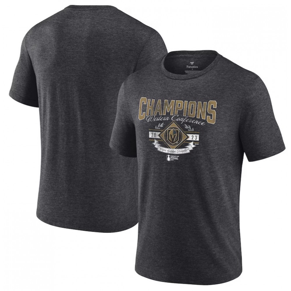 Men’s Vegas Golden Knights Heather Charcoal 2023 Western Conference Champions Icing Tri-Blend T-Shirt