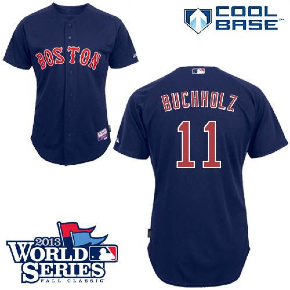 Red Sox #11 Clay Buchholz Dark Blue Cool Base 2013 World Series Patch Stitched MLB Jersey
