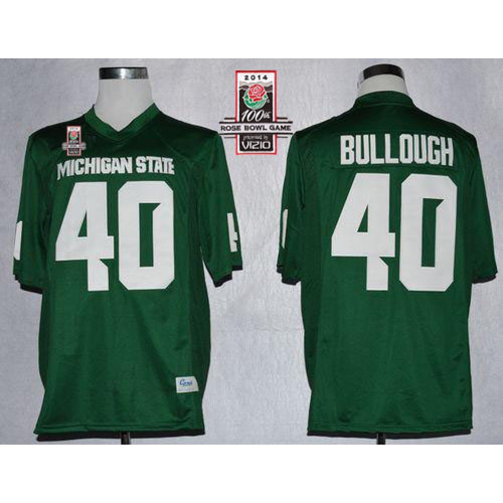 Spartans #40 Max Bullough Green/White 2014 Rose Bowl Patch Stitched NCAA Jersey