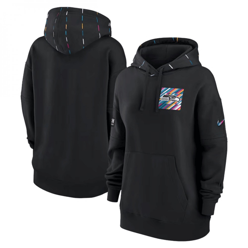 Women’s Seattle Seahawks Black 2023 Crucial Catch Club Pullover Hoodie(Run Small)