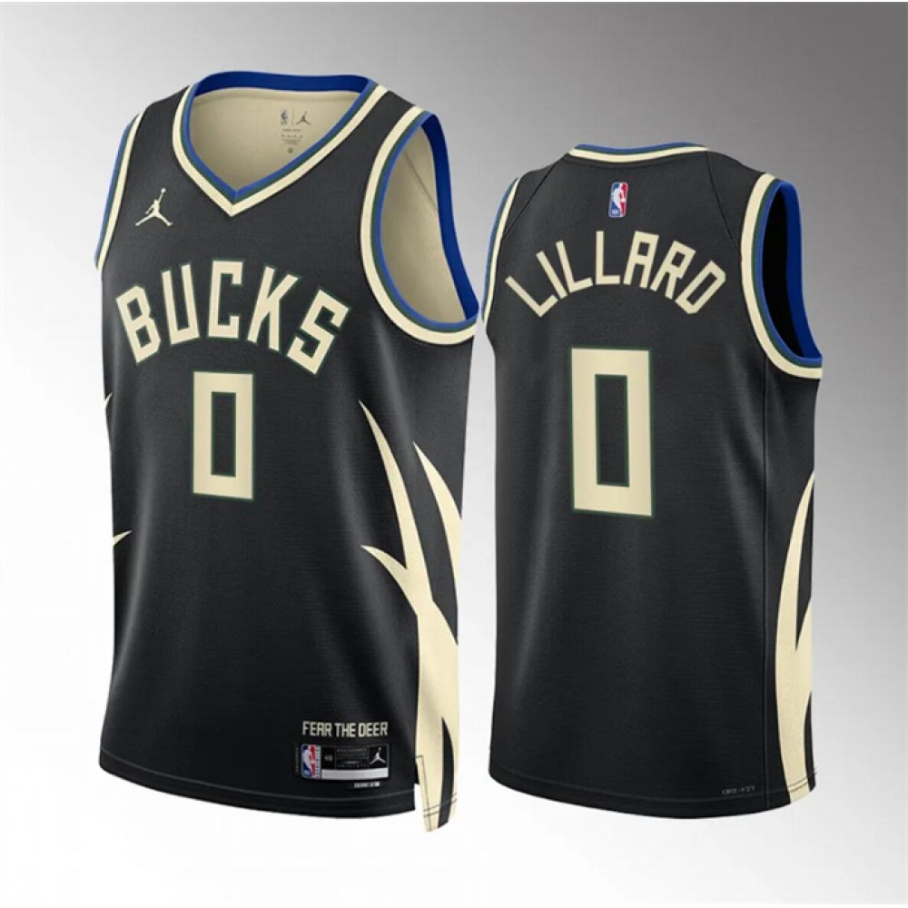 Men’s Milwaukee Bucks #0 Damian Lillard Black Statement Edition Stitched Basketball Jersey