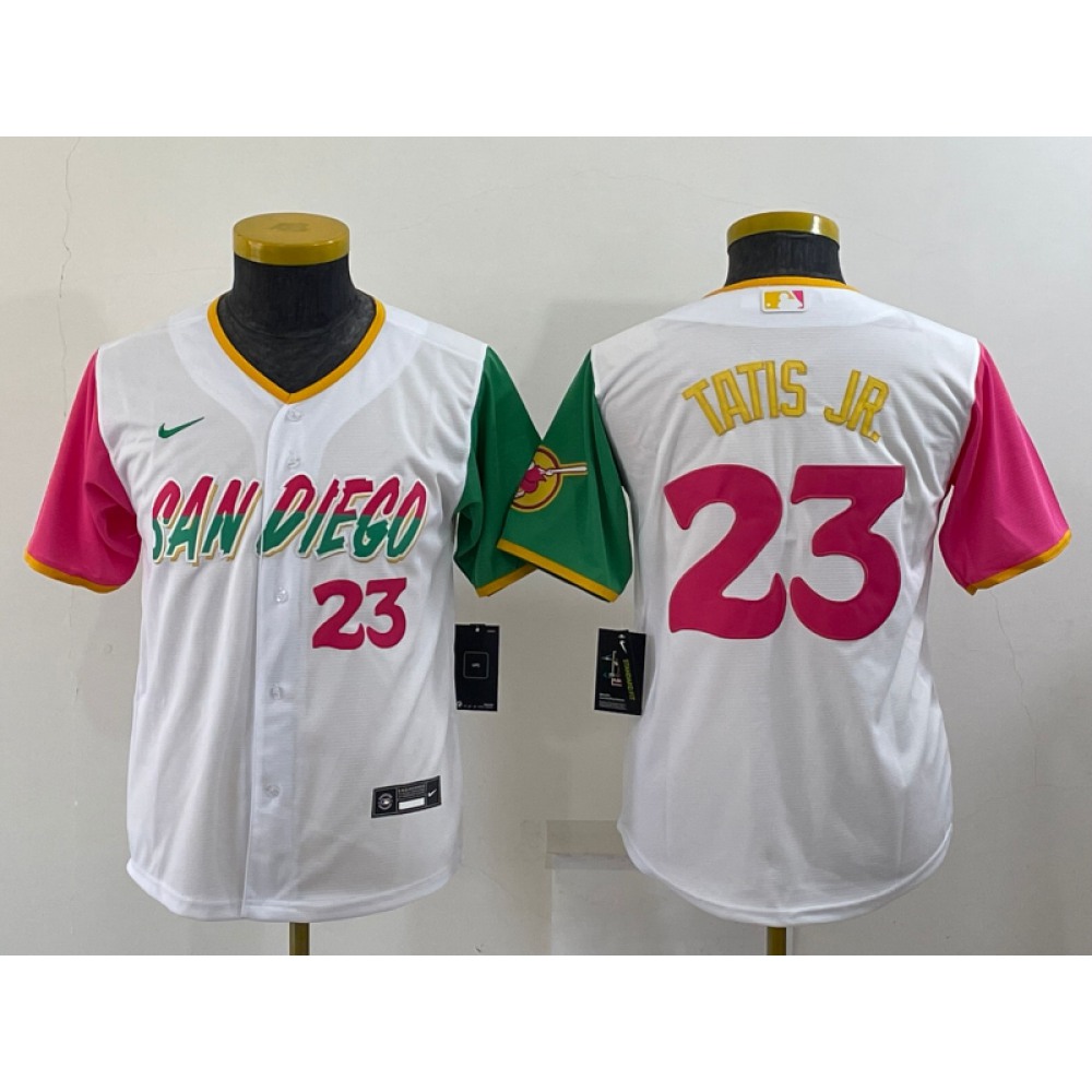 Women’s San Diego Padres #23 Fernando Tatis Jr. 2022 White City Connect Cool Base Stitched Baseball Jersey(Run Small)