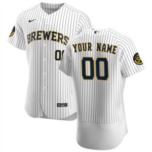 Men’s Milwaukee Brewers White Customized Stitched MLB Jersey