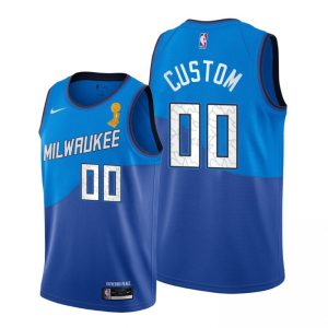 Men’s Milwaukee Bucks Customized 2021 NBA Finals Blue City Edition Stitched Jersey