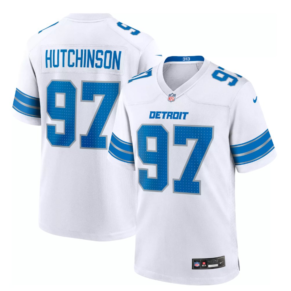 Men’s Detroit Lions #97 Aidan Hutchinson Blue Game Jersey