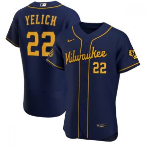 Men’s Milwaukee Brewers #22 Christian Yelich Navy Alternate 2020 Stitched Jersey